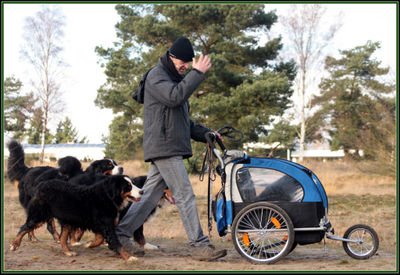 Above: Hans other love his motorbike ohh and a bernese, Georgiana. The only thing missing is the rest of the Bernese and Lisa :)